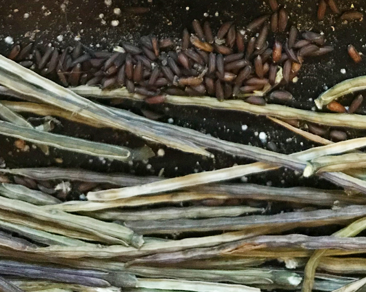 In weeked am vazut ca au inceput sa i se usuce pastaile cu seminte asa ca le-am cules inainte sa le spele ploile. Dupa cateva zile la caldura si loc uscat au inceput sa crape, semn ca pot fi alese.