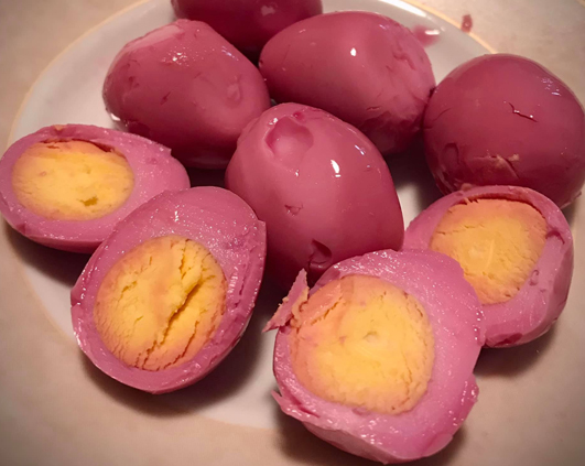 Si pe care le mananc in diverse forme, asa ca ultima gaselnita au fost ouale de prepelita marinate cu zeama de sfecla.