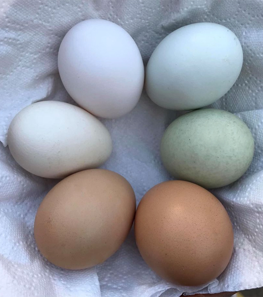 De cand am hotarat sa cresc gaini am visat sa am oua colorate. Asa ca am incercat sa adun gaini din mai multe rase care sa imi ofere oua cat mai colorate. Momentan am albe si crem de la silver leghorn, bleu si verzui de la ameraucana si doua nuante de maro deschis de la gaini rosii de crescatorie – nu se stie exact ce soi sunt.