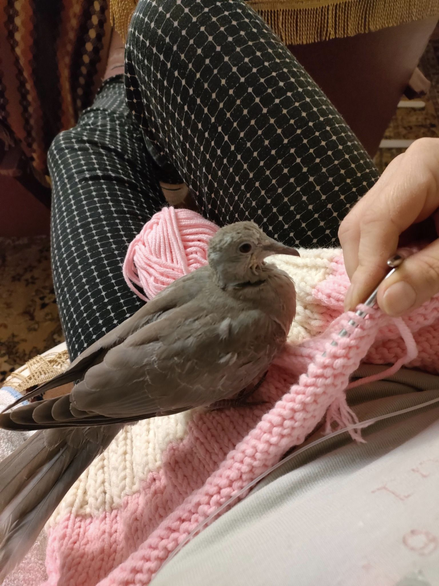 Facut biberon din seringa si deget de manusa chirurgicala, cumparat “lapte de porumbel” si hranit pasare din 2 in 2 ore zi si noapte. N-am fost asa rupta in doua de cand ma stiu. Noroc ca chestiunea n-a durat prea multe zile, am trecut la 4-4 ore si apoi de 4 ori pe zi.