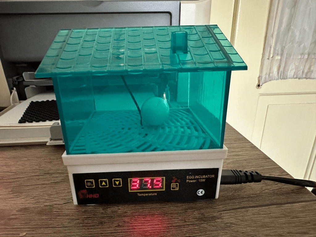 Pe sfarsitul lui august, ma suna un prieten ca a gasit un ou intr-un copac, probabil cazut din vreun cuib. Merg sa-l iau. Ajunsa acasa il verific si vad ca are pui viu in el. Instant am pus incubatorul si oul la caldurica.