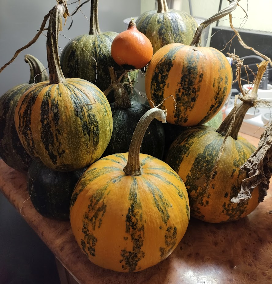 Au fost prolifici, cate 4-5 dovleci pe fiecare fir, insa din cauza ca i-am plantat tarziu nu au apucat sa se dezvolte suficient pana la venirea frigului si au ramas mititei. Oricum, anul viitor intentionez sa pun mult mai multi. Chiar si cei culesi verzi s-au copt stand pe blatul din bucatarie.