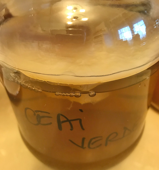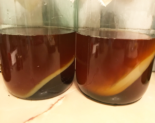 Trebuia sa refac ceaiul si sa imbuteliez bautura dupa 7-10 zile dar am fost prinsa cu alte cele si nu am apucat. Asa ca intre timp m-am ales cu inca doua SCOBY si niste otet. Da, daca kombucha e lasata mai mult peste ciuperci, se transforma in otet.