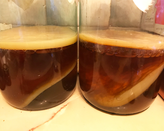 Pana gasesc cui sa dau din ele m-am apucat de documentat si experimentat. Am gasit pe net ca de fapt nu e musai doar ceai negru, ca merge cu orice fel de ceai dar sa nu aibe proprietati antiseptice, gen ceai de menta. Se poate face din ceai verde, rooibos, chiar si din flori de soc.