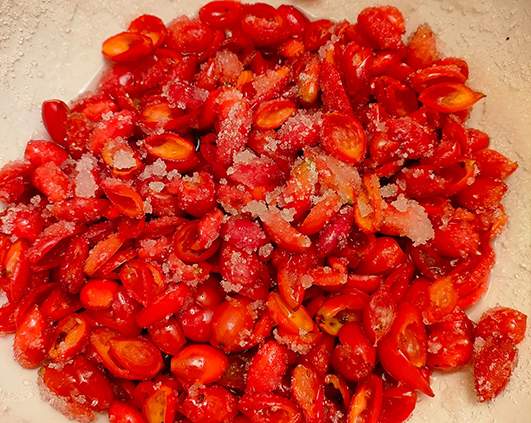 Am vrut sa incerc un alt mod de a face dulceata de macese. Asa ca am cautat pe net cum se mai poate prepara aceasta dulceata si am gasit metoda “chinez batran”, adica se ia fiecare boaba si se taie capetele, apoi se scot samburii cu varful unui cutit 🙂